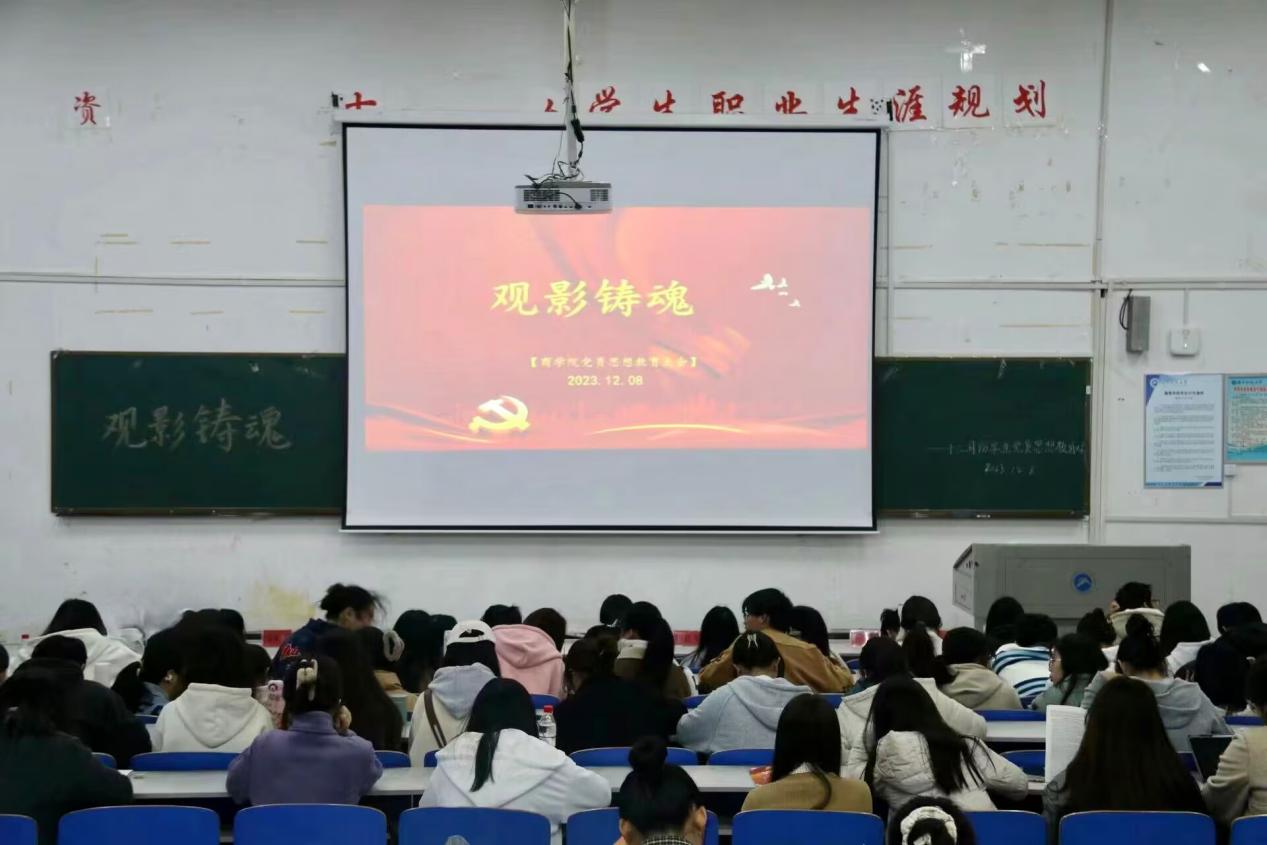 2023年12月8日下午,维多利亚vic115优惠大厅在一教204召开以“观影铸魂,深学笃行”为主题的党员思想教育大会。维多利亚vic115优惠大厅党建组织员蔡美玲以及全体学生党员参加观影活动。