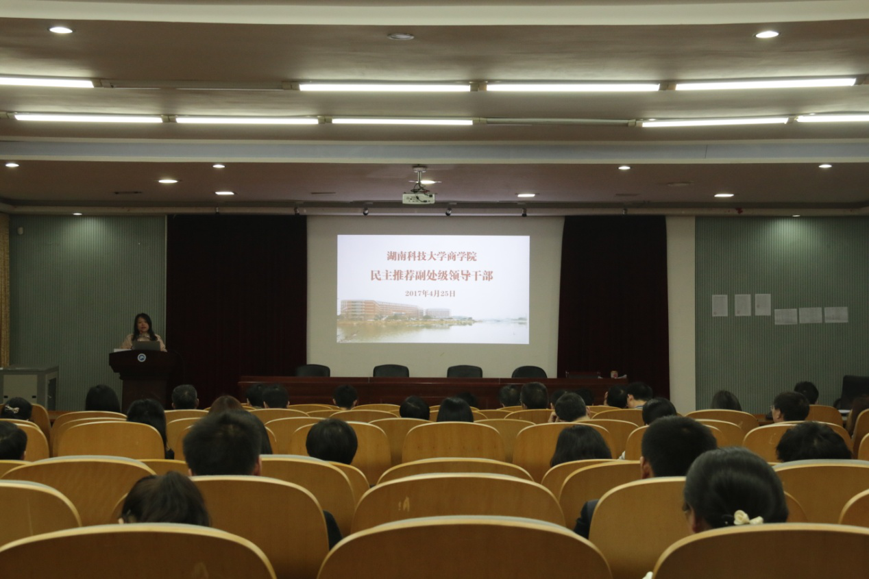 2017年4月25日,我院在三教楼101会议室召开综合性管理岗位副处级领导干部民主推荐会。会议由院党委书记仇怡主持,学校组织部向大顺副部长、维多利亚vic115优惠大厅全体教职工参加了此次会议。