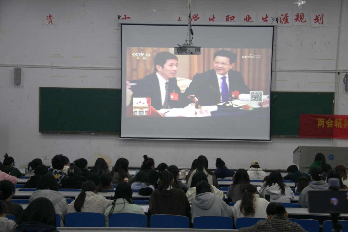 党建组织员蔡美玲聚焦“全国两会热词”为学生党员们进行解读,她激励全体学生党员:“新时代青年党员要以‘两会精神’为思想引领,持续铸牢‘绝对忠诚’的政治品格,不断练就‘善作善成’的过硬本领,以青年党员之担当奋力谱写中国式现代化新篇章。”
