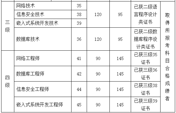 获证条件说明:报考一、二级的考生本次考试成绩合格后即可取得相应证书。报考三、四级的考生在取得相对应低级别的同一类别证书后方可获得三、四级证书。考生可以一次同时报考两个级别考试,同时通过者可同时获取两个科目证书,低级别未通过而高级别通过者,本次不能获得证书,高级别合格成绩保留一次,下次报考低级别考试通过者,可以在下次一起获得证书。