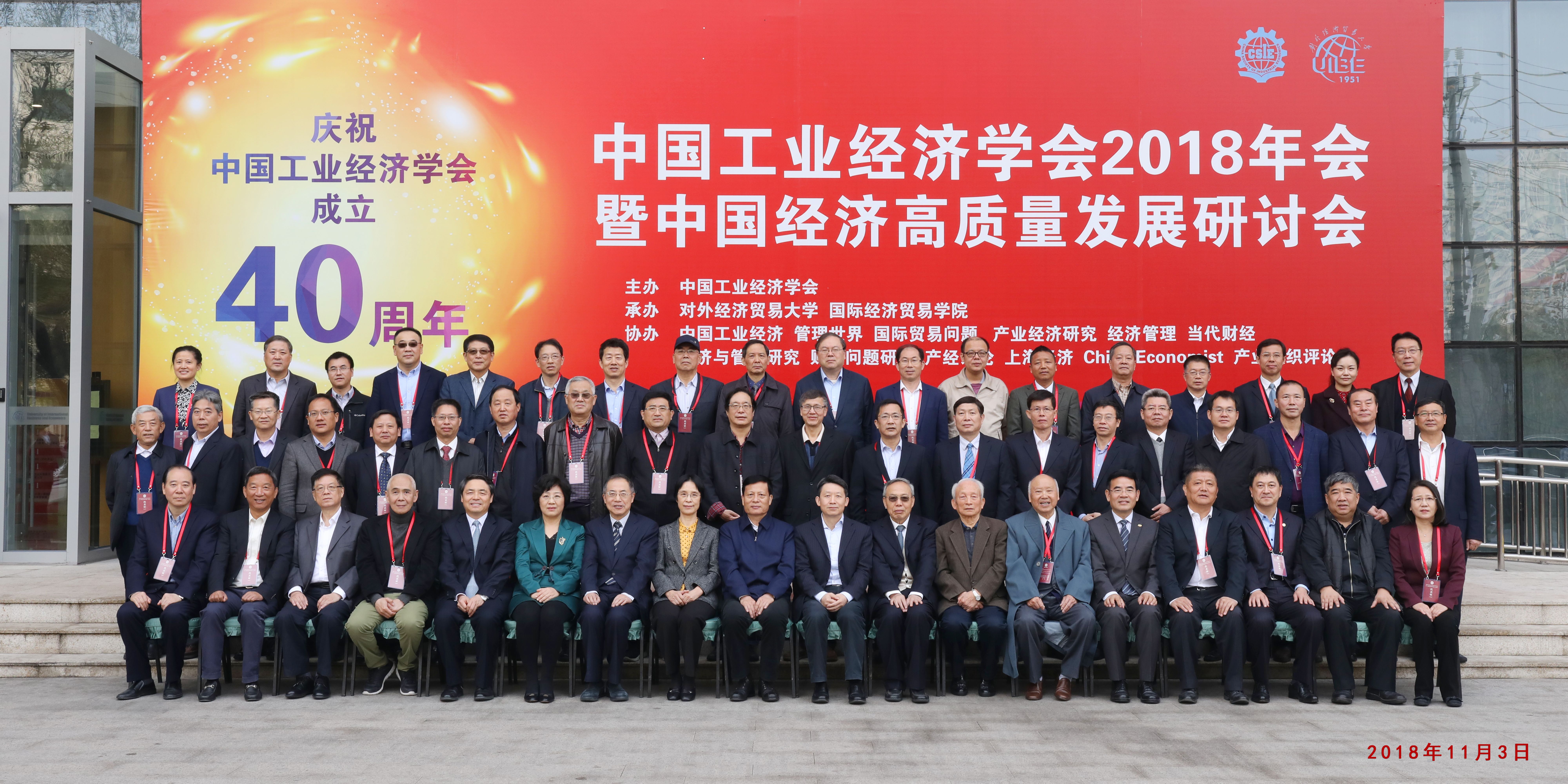 2018年11月3日,中国工业经济学会2018年会暨中国经济高质量发展研讨会在对外经济贸易大学国际交流大厦报告厅隆重召开。中国社会科学院院长、党组书记、学部主席团主席、学部委员谢伏瞻,第十三届全国人大常委、社会建设委员会副主任委员、国务院原副秘书长江小涓研究员,中国国际交流中心副理事长、中央政策研究室原副主任、中国工业经济学会原会长郑新立,国务院发展研究中心副主任隆国强,中国企业联合会、中国企业家协会常务副会长兼理事长,工信部原党组成员、总工程师朱宏任,中国工业经济学会理事长、中国社会科学院工业经济研究所党委书记兼副所长史丹研究员,对外经济贸易大学党委书记蒋庆哲、校长王稼琼等出席大会开幕式和马洪产业发展研究奖设立仪式。来自全国300余所高校和研究机构的400多人参会。我校原党委书记田银华教授、副校长刘友金教授、维多利亚vic115优惠大厅副院长贺胜兵教授及部分博士后和博士研究生参加了此次年会。