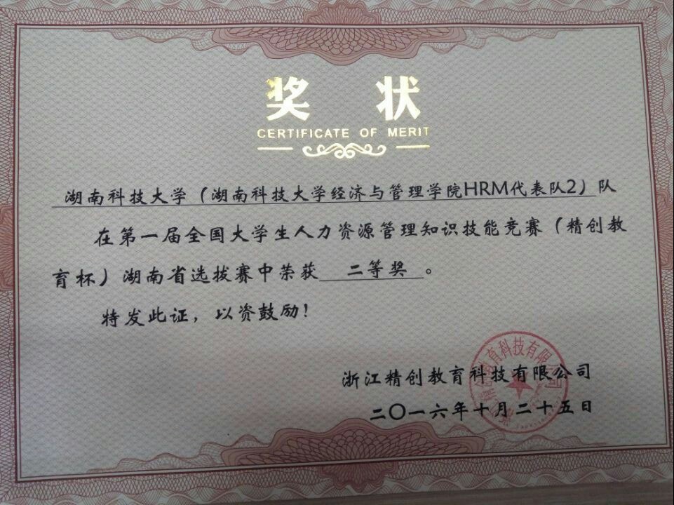 10月23日, 由浙江精创教育科技有限公司举办的第一届全国大学生人力资源管理技能竞赛湖南省选拔赛拉开战幕,我校经济与管理学院人力资源管理系派出12名学生分两队参加比赛,夺得一个二等奖和一个三等奖。
