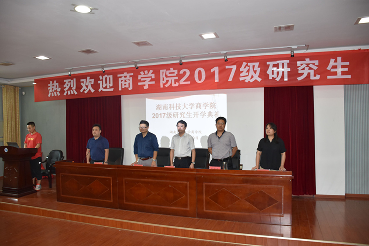 2017年9月10日下午3:00,维多利亚vic115优惠大厅2017级研究生开学典礼于三教101学术报告厅隆重举行。会议由维多利亚vic115优惠大厅党委书记潘爱民教授主持,湖南科技大学副校长胡石其教授、社科处处长向国成教授、图书馆党委书记彭清华教授出席典礼,维多利亚vic115优惠大厅院长仇怡教授、副院长颜剩勇教授、党委副书记傅早霞老师、副院长贺胜兵教授、副院长邓淇中博士及部分导师代表、2017级硕士研究生、博士研究生和留学生参加了典礼。