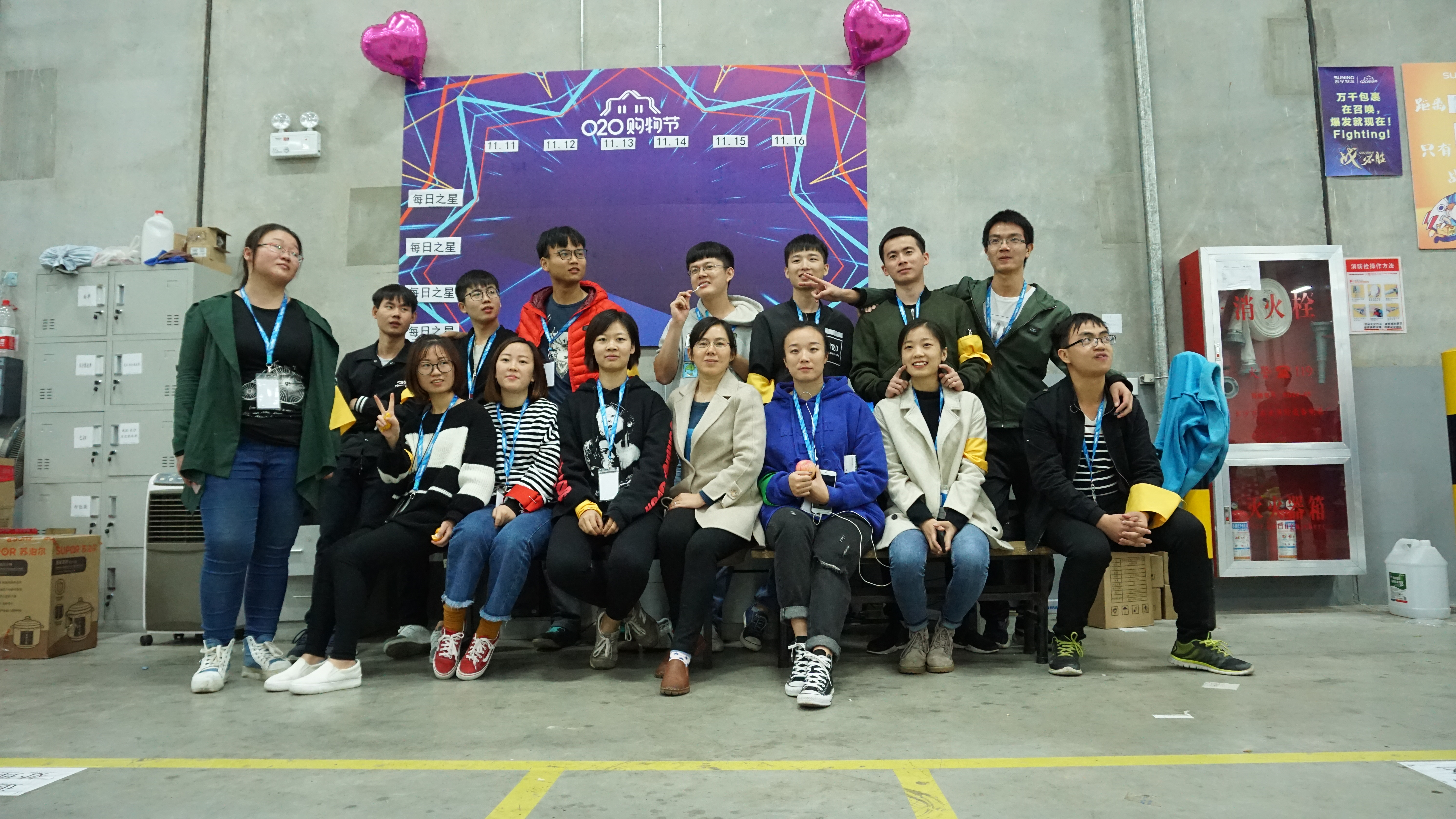 2017年11月10日,维多利亚vic115优惠大厅电商与物流系系主任王晓乔老师以及电商专业张海燕老师来到苏宁永安小件仓,在湖南苏宁云商有限公司总经理窦祝平先生、湖南苏宁云商有限公司人事行政总监冯花女士、长沙苏宁物流有限公司总经理朱华军先生、人事经理杨雄伟先生等陪同下,看望了正在进行专业实习的14级电子商务专业的30位同学。两位老师与各位学生进行交流,深入了解学生们的实习情况。