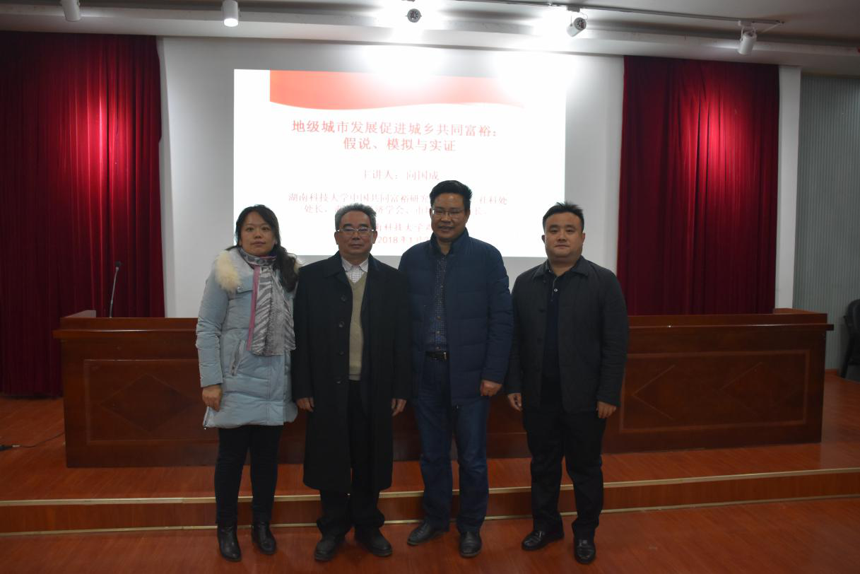 1月2日下午3:00,维多利亚vic115优惠大厅举办了主题为“地级城市发展促进城乡共同富裕:假说、模拟与实证”的“惟新论坛”学术讲座。湖南科技大学中国共同富裕研究中心主任、社科处处长向国成教授主担任主讲,维多利亚vic115优惠大厅院长仇怡教授主持,湖南创新发展研究院院长田银华教授、维多利亚vic115优惠大厅党委书记潘爱民教授、部分教师以及全体研究生参加此次讲座。