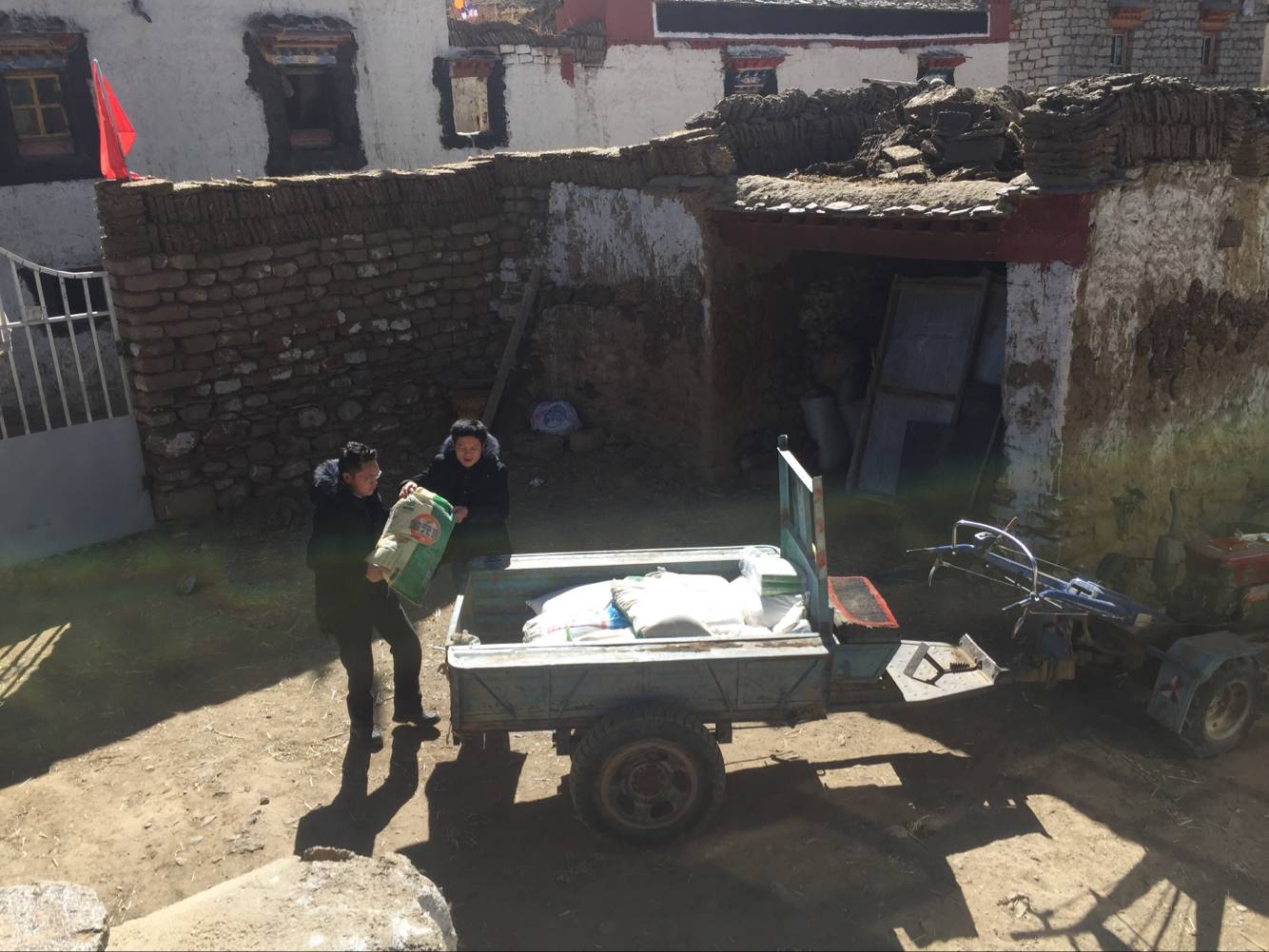 维多利亚vic115优惠大厅党委副书记傅早霞和学工办主任陈攀搬运生活物资赠送石达普尺家