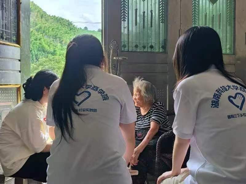 九十一岁高龄的罗奶奶热心地与实践团成员们聊起家长里短,她说道:“谢谢你们的关心!也感谢党和国家的帮扶,让我温饱无忧!尽管我年纪大了,腿脚不灵活,但我还种了一些蔬菜和水稻,生活上没啥问题!”她勇毅坚韧的品格感染了实践团的每一位成员。八十一岁的杨爷爷则和实践团成员们分享年青时的奋斗故事,并勉励大家:“青春是最美好的,也是最珍贵的。你们就像是七八点钟的太阳,充满了活力,一定要听党话、跟党走,日后多为社会发展做贡献!”这些饱含深意的话语如同夏日清风,无声地浸润实践团成员们的心田。临别时,爷爷奶奶们依依不舍地抓着成员们的手,迟迟不愿松开。