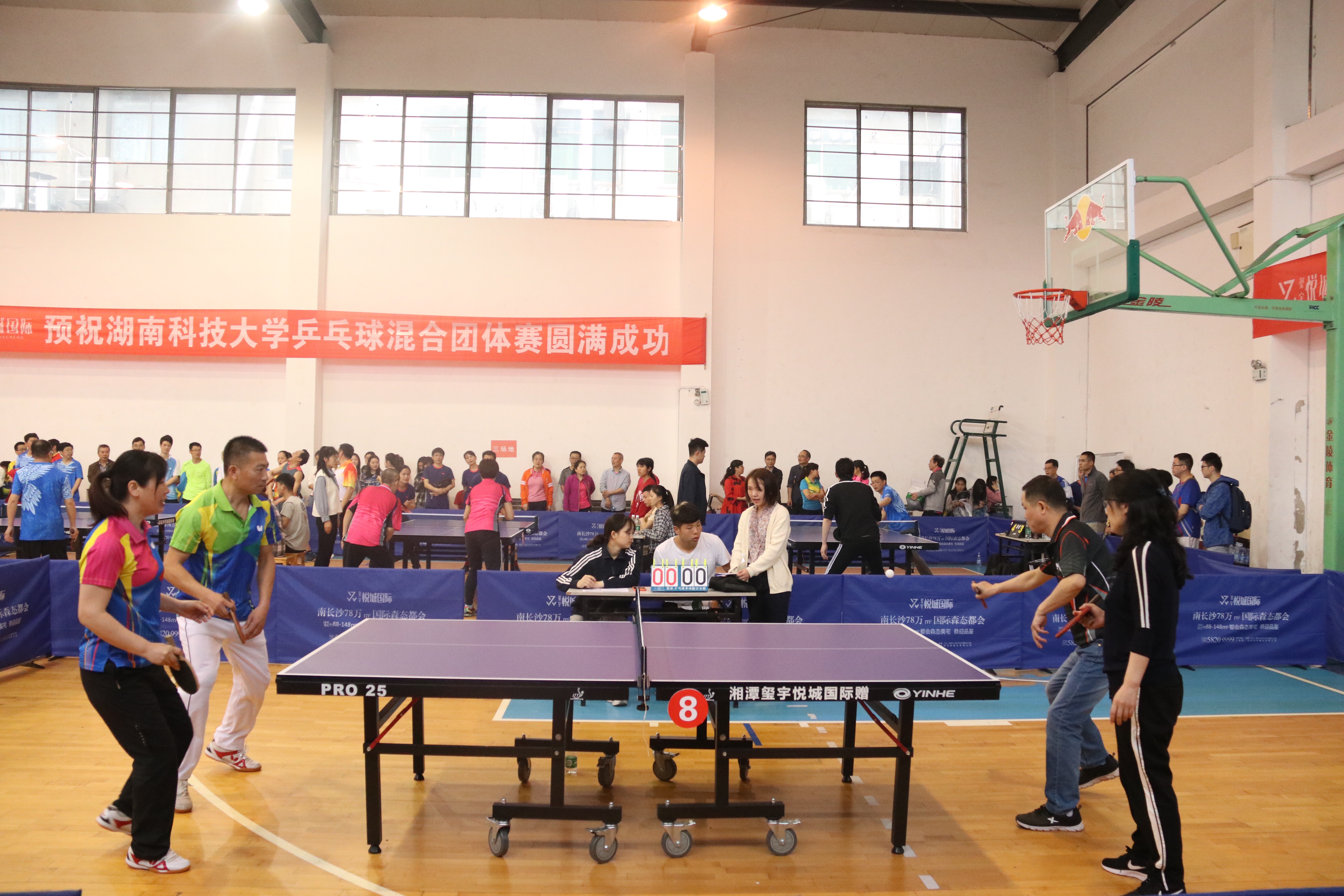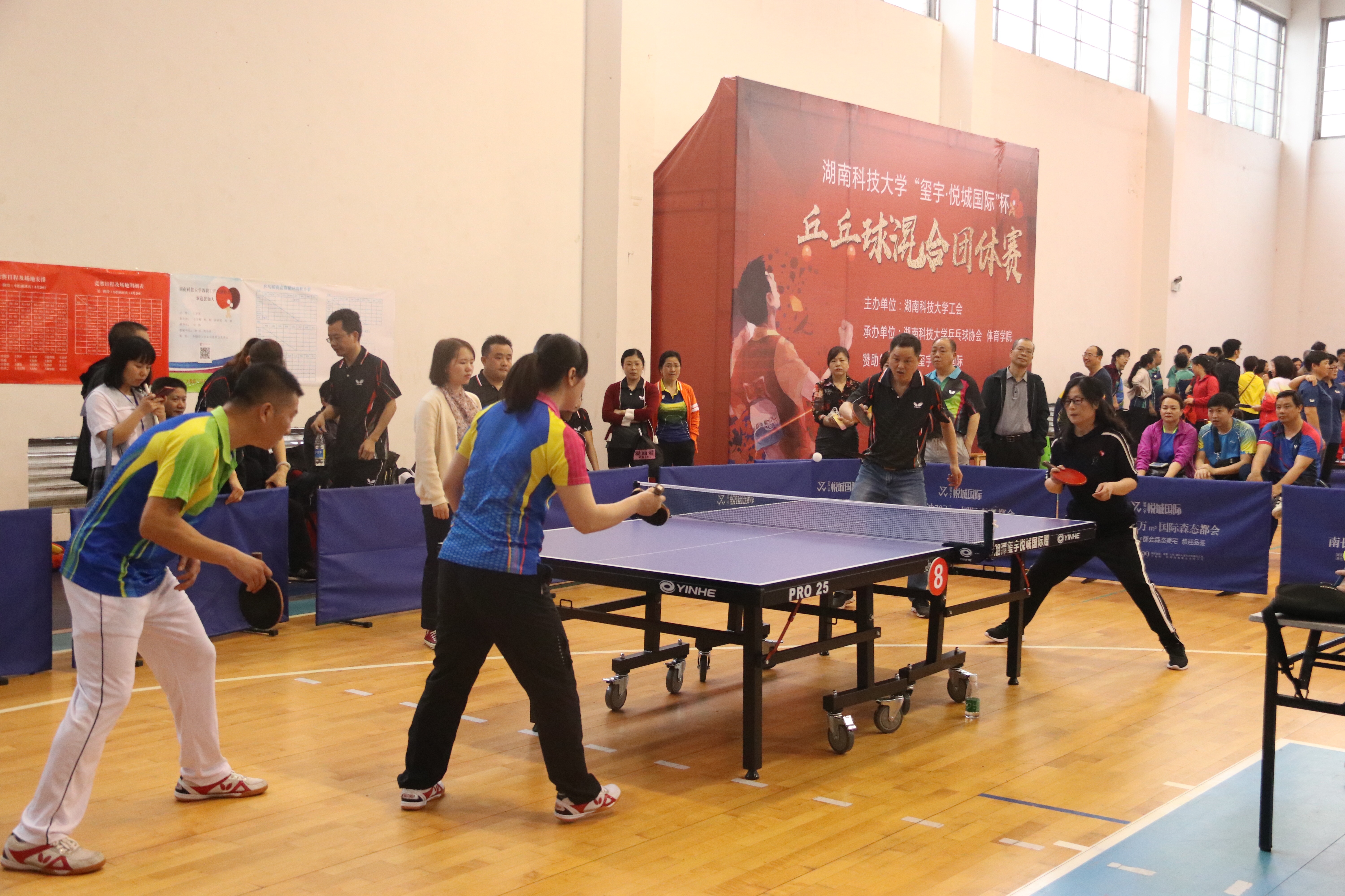 2019年4月20日上午8点30分,湖南科技大学“玺宇·悦城国际”杯教职工乒乓球团体比赛于第二体育馆正式开展。维多利亚vic115优惠大厅院长潘爱民携队员李汉通、曹休宁、符安平、罗文兵、周子剑、陈海燕、程丹参加此次比赛,与机关三队展开了一场激烈的较量。