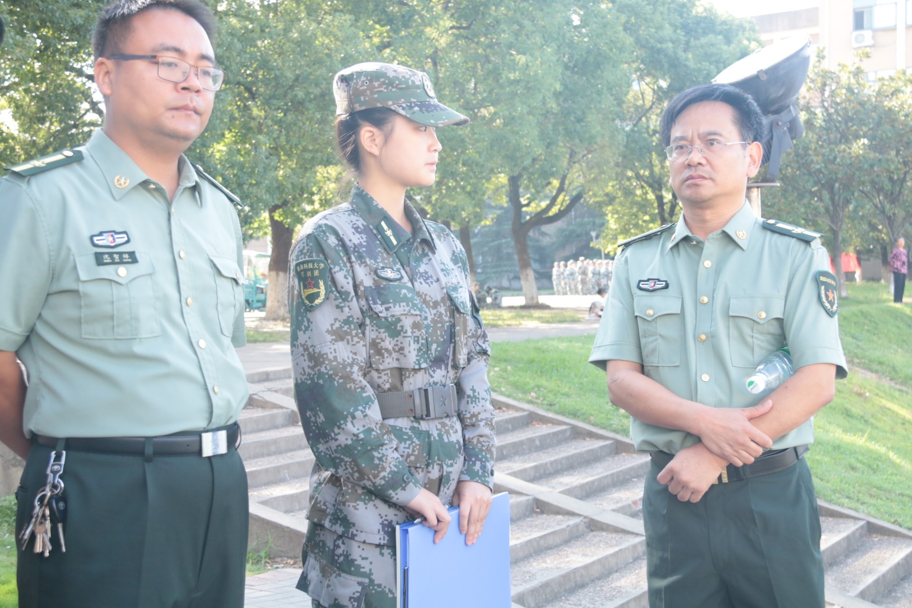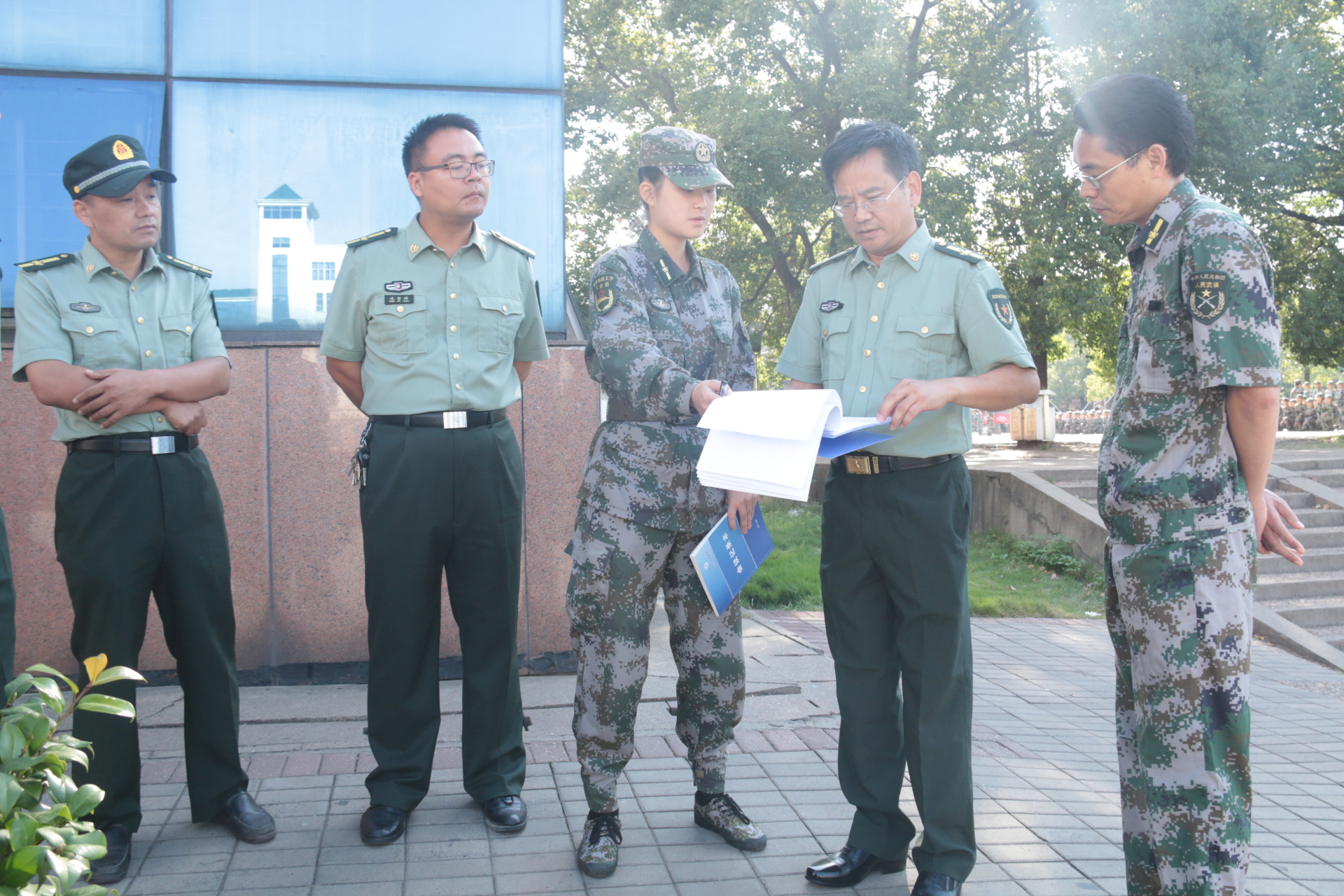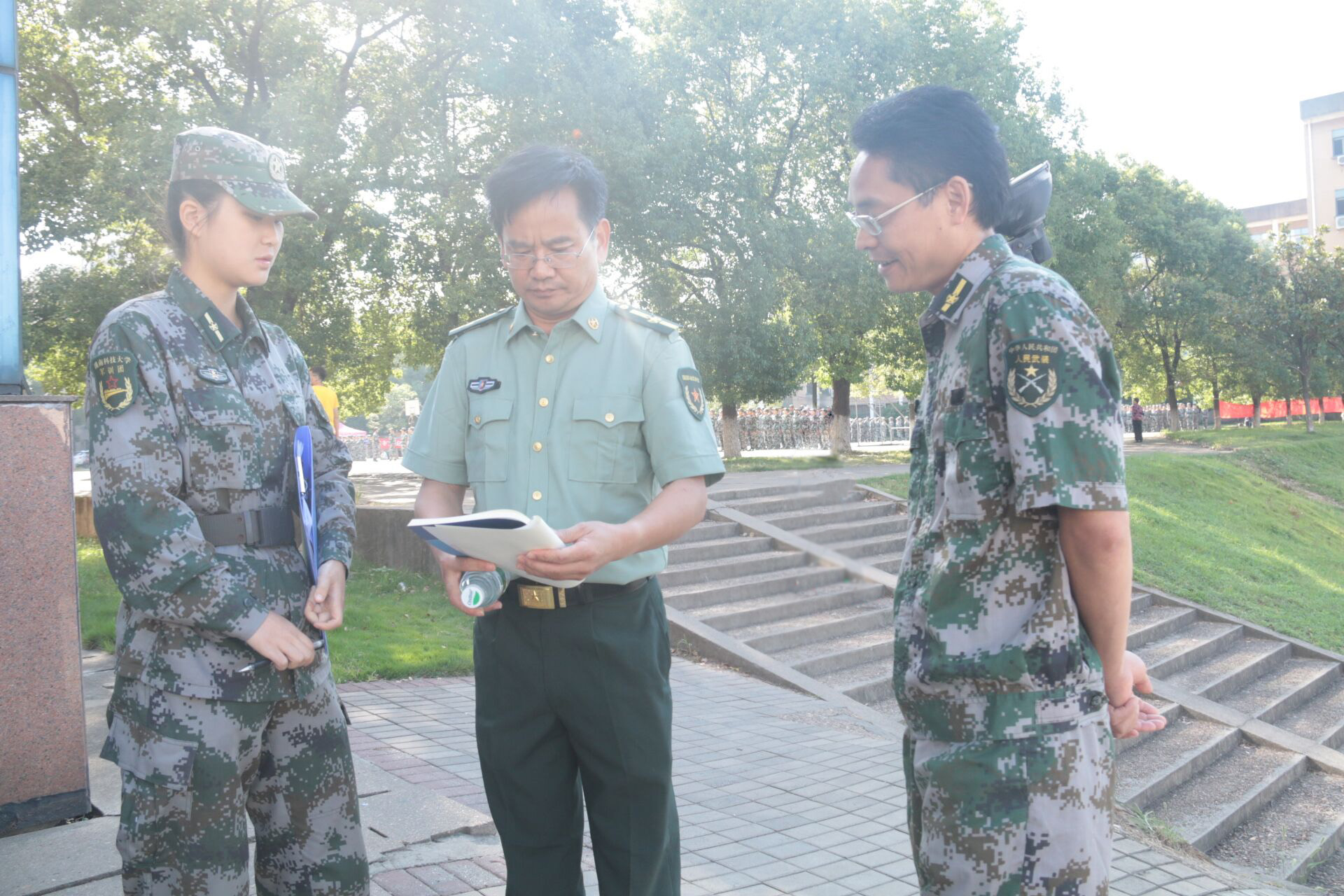 10月3日上午9点,湖南科技大学保卫处处长朱理哲、副处长沈智祥等人莅临维多利亚vic115优惠大厅视察军训情况,维多利亚vic115优惠大厅党委副书记傅早霞、学工办主任陈攀以及军训团主要负责人到场汇报工作。