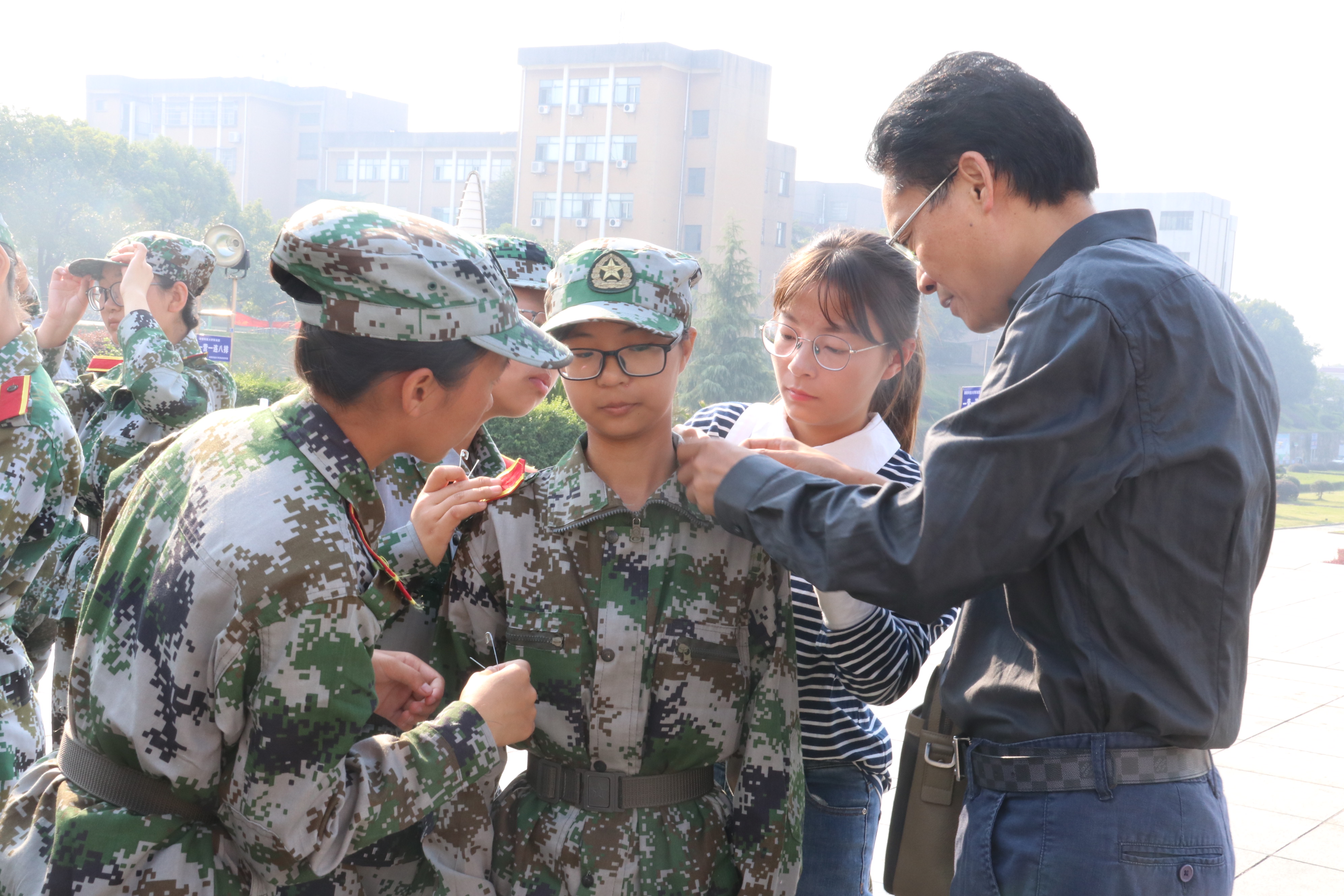 为迎接此次检查工作,傅早霞及各位老师在日常军训期间多次前往军训场地亲自指导,并为“新兵”们准备了发夹、别针等物件交由学生干部发放给所需新生,鼓励新生树立良好“新兵”形象。
