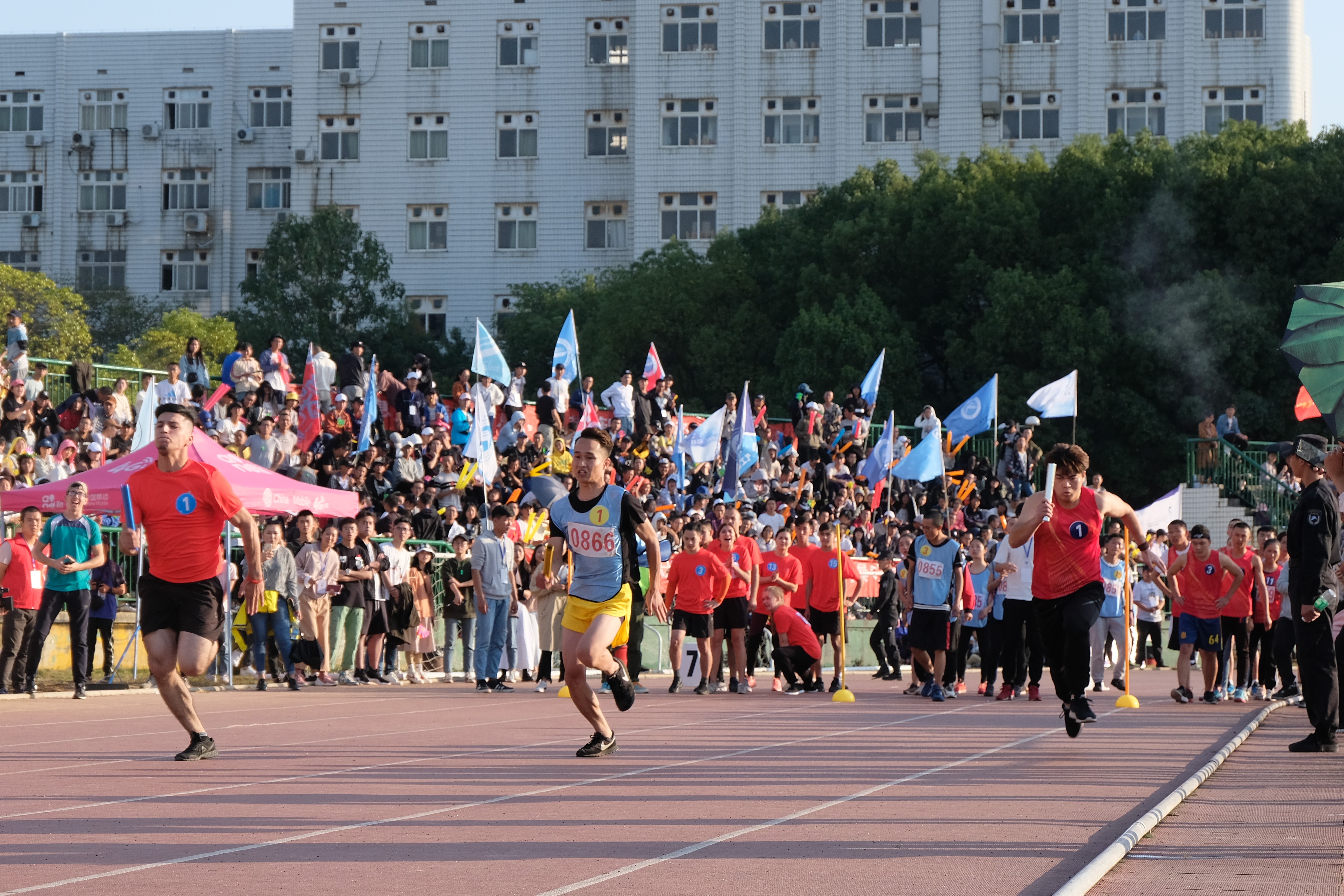 尽管同学们已经筋疲力尽,但呐喊和激情丝毫没有减弱,在热烈的欢呼声中,20名商院健儿已经在跑道两侧准备就绪。此刻他们穿着火红的商院运动服,内心只有一个共同的目标,为商院争光!