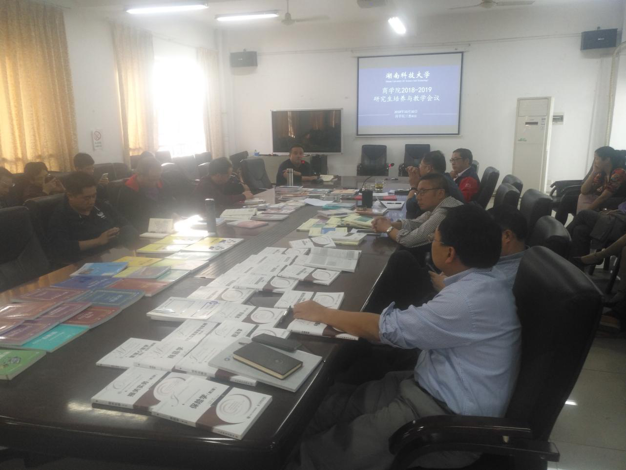 颜剩勇副院长带领导师们学习了《湖南省全面落实研究生导师立德树人职责的实施细则》、《湖南科技大学硕士研究生指导教师管理办法》和维多利亚vic115优惠大厅研究生导师招生资格确定细则等文件,传达了最新的研究生培养与教学的政策动态,分析了研究生培养与教学的现状,并对培养方案的修订做了具体要求。