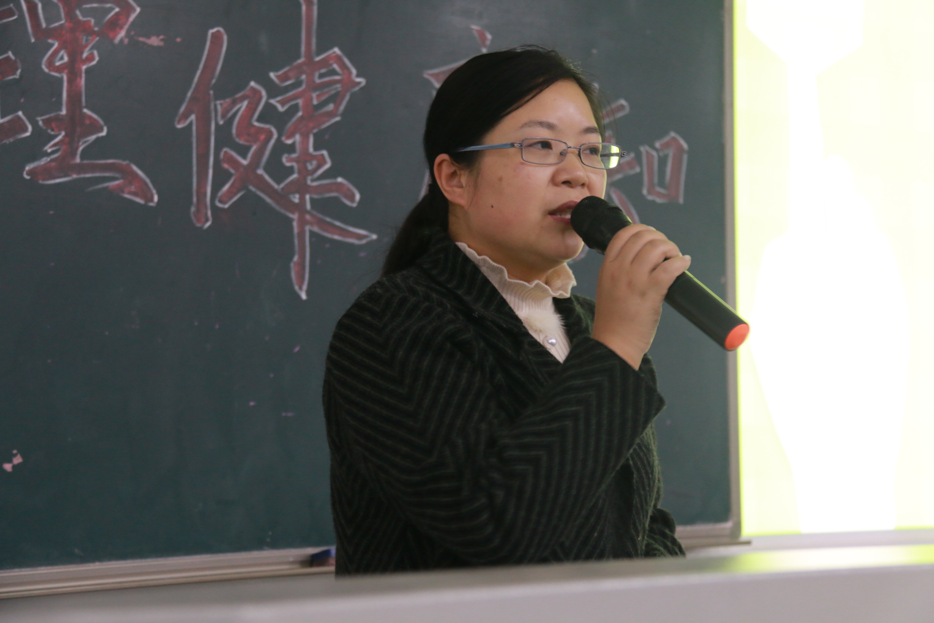 会议伊始,主持人首先介绍了本次讲座的目的。接着,便由罗江林老师讲话。她首先介绍了现在大学生普遍存在的一些问题,并指出:“同学们应当正确看待心理问题,发现问题要及时处理”,接着她又表示:“很多心理状况不好的同学不愿意来接受心理咨询,希望这种情况能在今后有所改善。”