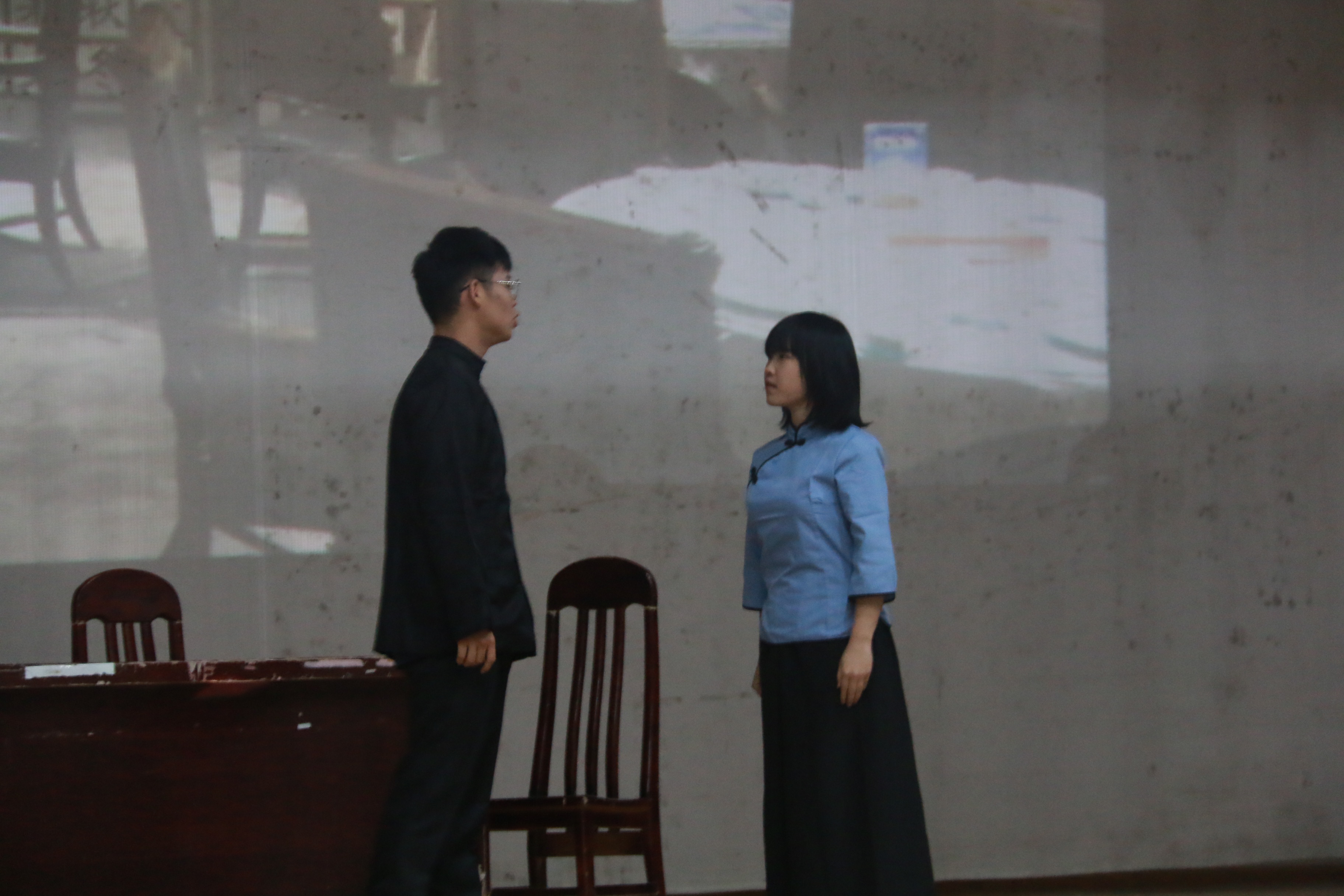 其中,18级工商管理专业队以其青春活力吸引大量观众的眼球。无论是熟悉的蓝色校服,还是“广播体操”形式的舞蹈,都引起了观众的共鸣。大胆夸张的肢体语言、声情并茂的台词表演以及跌拓起伏的剧情时刻活跃着场上的气氛,使得观众时而捧腹,时而蹙眉,充分调动着在场嘉宾和观众的情绪。