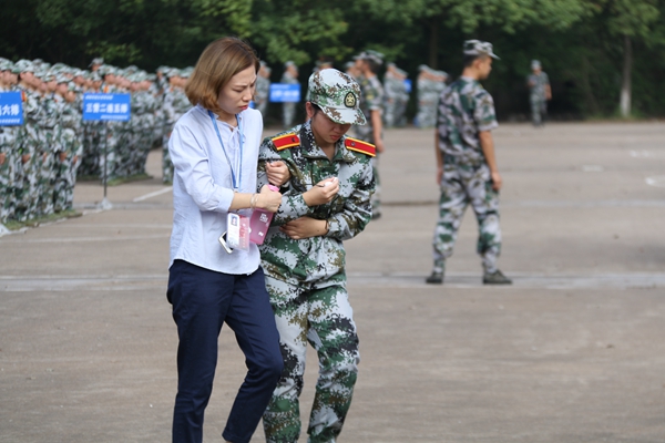 在一片的橄榄绿中,一群忙碌的的身影行走在服务台与各排之间,为伤病员端水、送药,观察着自己排的训练情况,他们有一个统一的名字——助班。