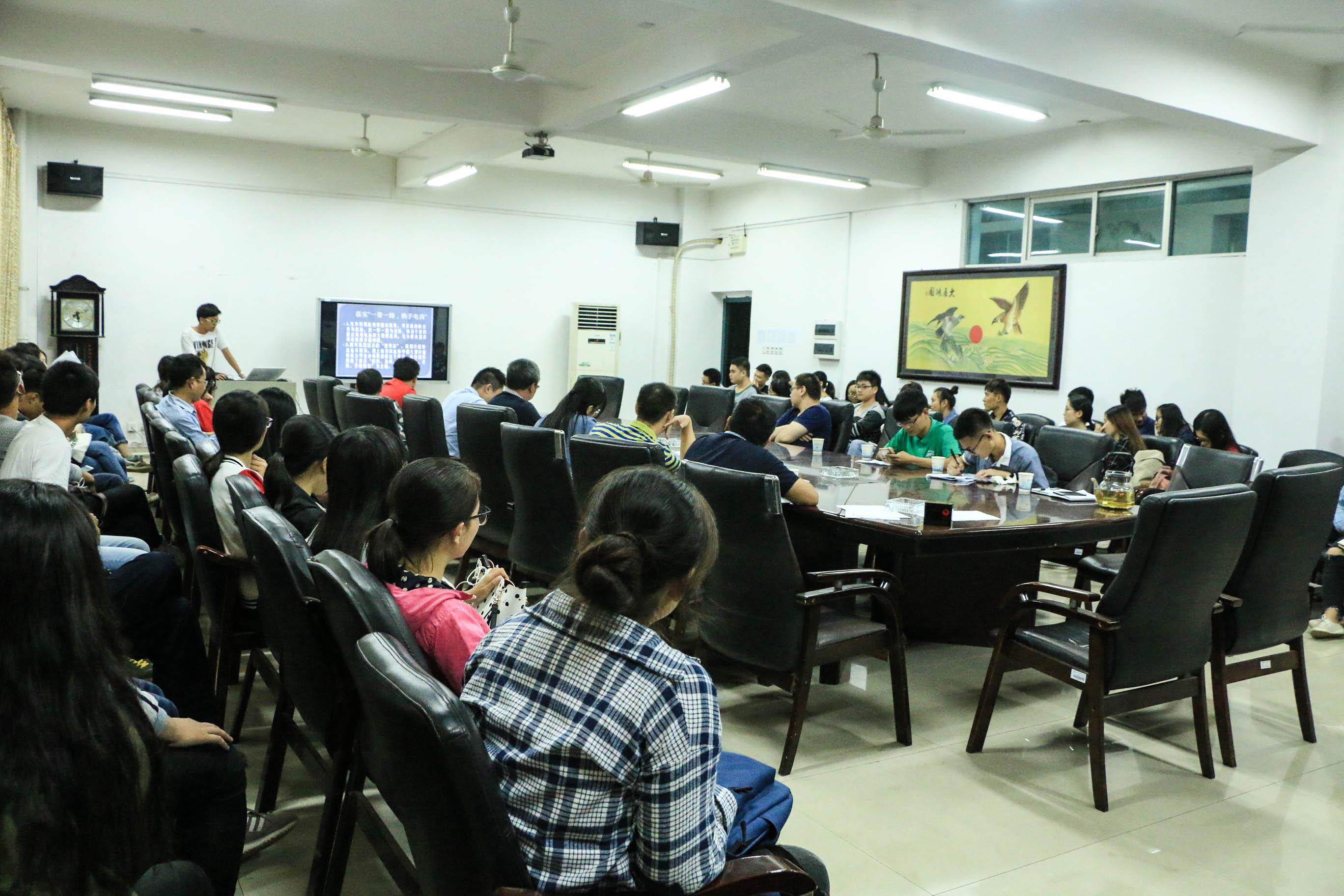2016年9月28日19:30,湖南科技大学第一届“金桥杯”现代物流设计大赛复赛答辩在三教410正式展开。我院院长向国成、副院长邓淇中出席了本次大赛,陈为民、王鹤、赵伟、张海燕、张人龙、罗春元、吴海等老师受邀担任评委。