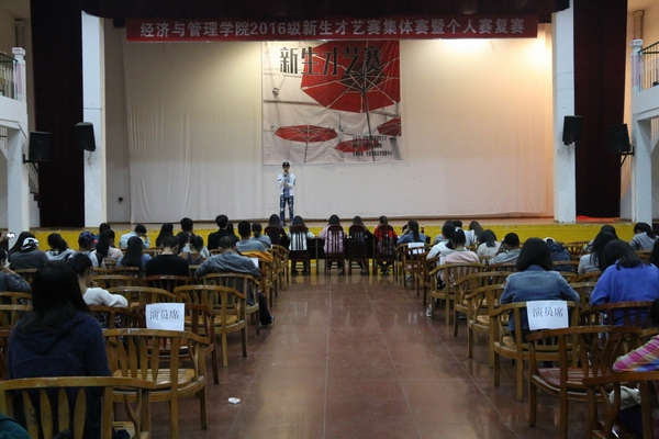 为了给怀揣梦想的新生一个展现自我的舞台,10月15日19:30经济与管理学院在南校活动中心举办了新生才艺大赛。16级辅导员陈攀老师,团委学生会主席团成员出席了此次活动。