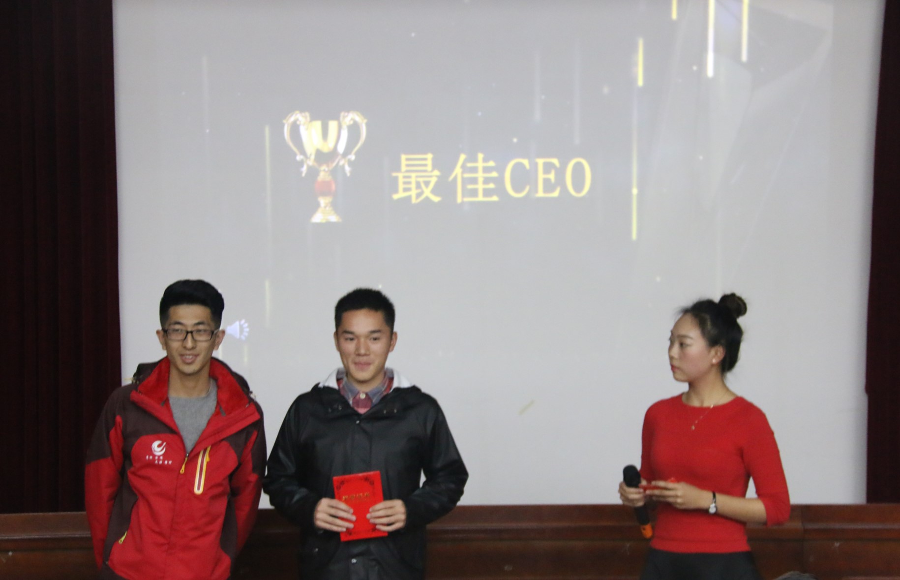 “你夺目,团队便因你而闪耀。”滕昊在比赛中获得了“最佳CEO”的荣誉。在发表单人奖获奖感言时,他表示自己通过比赛学到了不少知识,并强调了对指导老师和队友以及组委会的感激之情。最后颁发的是团体奖,各个公司的名称无不体现着各组成员的创意。团体奖一等奖DB03组的代表陆会想对此次竞赛感慨颇多,他表示此次收获很大,学到很多仅靠书本和课堂学习不到的知识,沙盘让他牢记骄兵必败的道理,也让他明白“不忘初心,方得始终”。