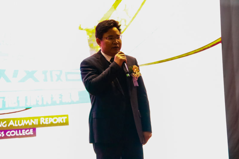 一曲荡气回肠的《东方红》为报告会拉开了帷幕。作为我校98届优秀校友代表,这是蔡杰峰第三次站上俱乐部的舞台,而每次身份不同感受也不同。2002年毕业至今,他先后在国企、外企、民营企业工作,如今转型到创业与投资行业,均获得大大小小的成功。但创业十多年的他,如今依旧还和众多毕业生一样,努力走在寻求另一种成功的路上。他认为,创业就像是站在风口,需要在不确定前路的情况下做出决定,恰恰这个做出决定的过程也正是创业的魅力所在。