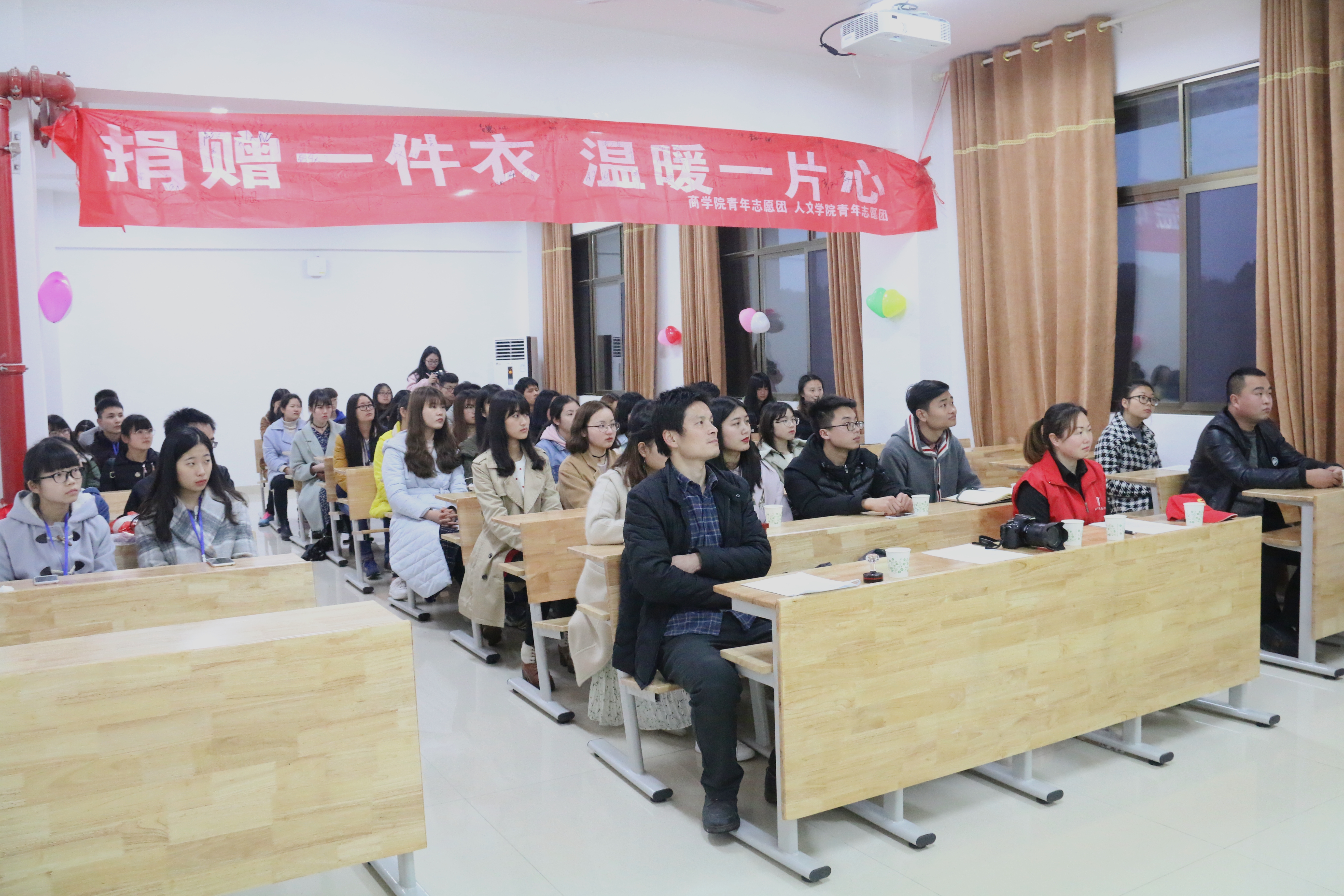 3月24日18:30,由维多利亚vic115优惠大厅、人文学院青年志愿团与湘潭市莲城志愿者协会联合筹办的“捐赠一件衣,温暖一片心”衣物捐赠落成仪式在文科楼B418举行。参加此次活动仪式的有维多利亚vic115优惠大厅辅导员老师陈攀、莲城志愿者协会会长杨波、人文学院团委学生会副主席姬铭晟、人文团委第一副书记陈莲瑶、维多利亚vic115优惠大厅青年志愿团团长胡宗翔以及人文学院青年志愿团团长周翠霞等。