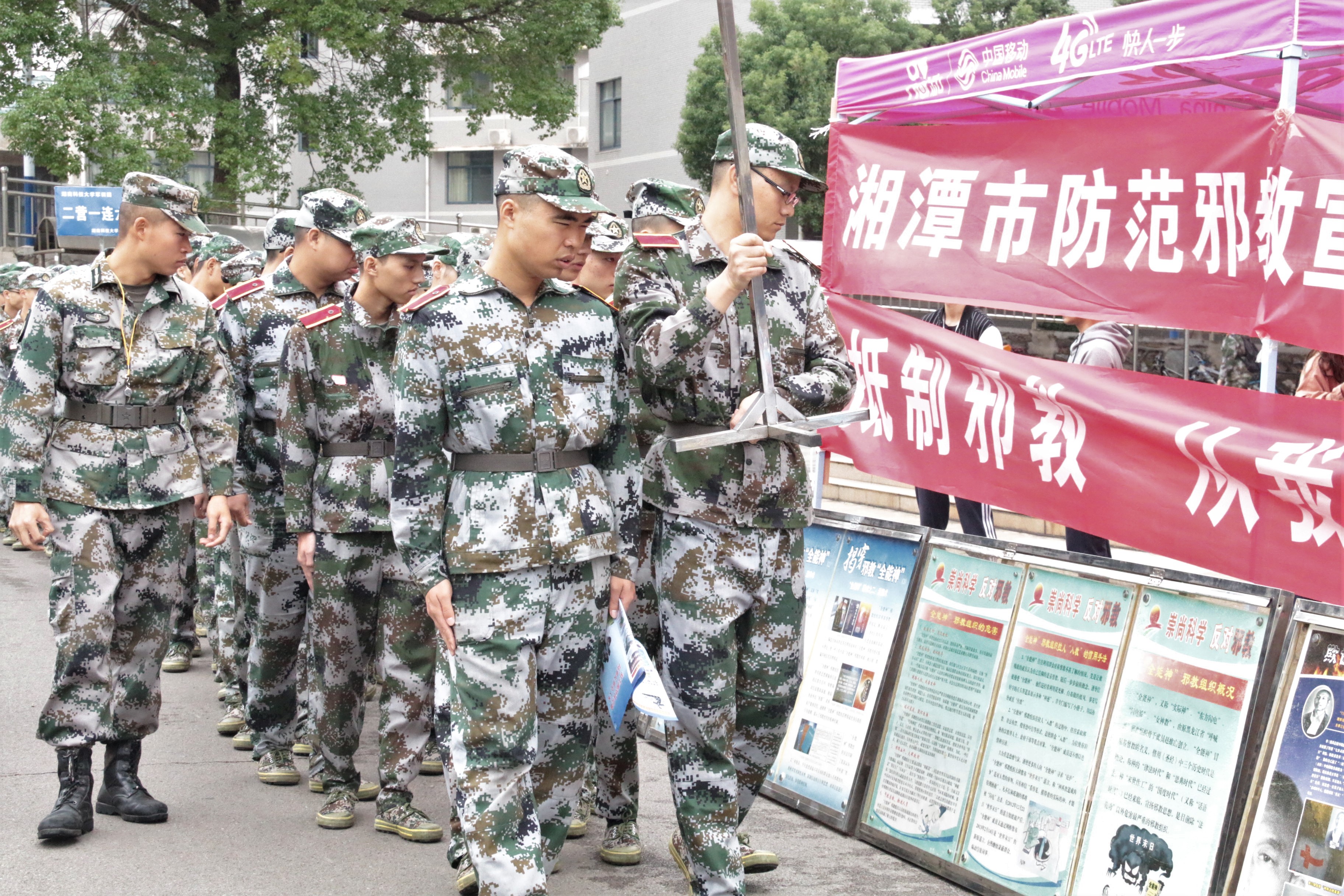 10月5日,新生迎来第四天的军训生活。为了提高学生对反邪教的认识,增强反邪教的自觉性和主动性,由湖南科技大学保卫处承办的反邪教宣传教育活动于南北校依次展开。上午,维多利亚vic115优惠大厅2017级新生在各排教官的带领下,列队准时抵达第五教学楼前篮球场参与反邪教宣传教育活动。