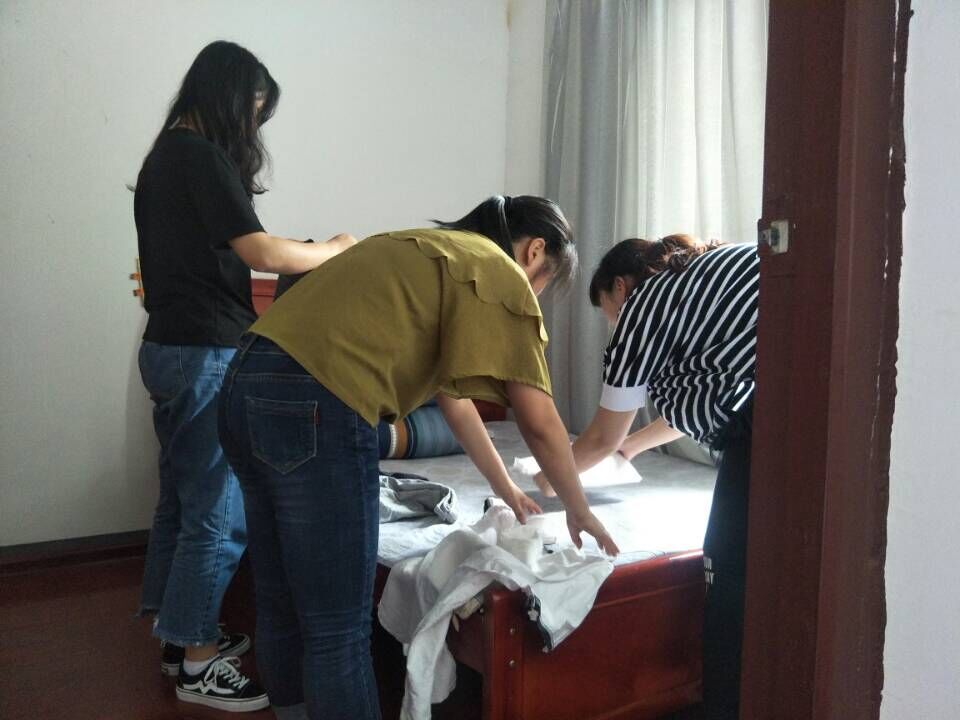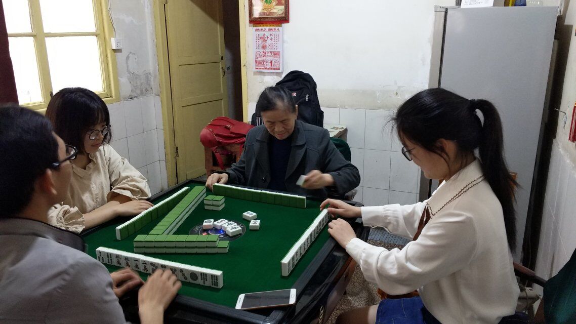 紧接着志愿者来到朱奶奶家,与张爷爷张奶奶不同的是朱奶奶是一个人居住但好在儿女每周都会来看她,一人居住打扫卫生也就没有那么轻松了,因此志愿者帮住朱奶奶打扫房间,细致到连窗纱都会拆下来擦洗,在志愿者的帮助下朱奶奶的房间显得格外干净亮堂。而其余志愿者看到朱奶奶家的麻将桌便主动提出要陪奶奶打麻将,就这样边打麻将边唠家常志愿者与朱奶奶的距离又近了许多。