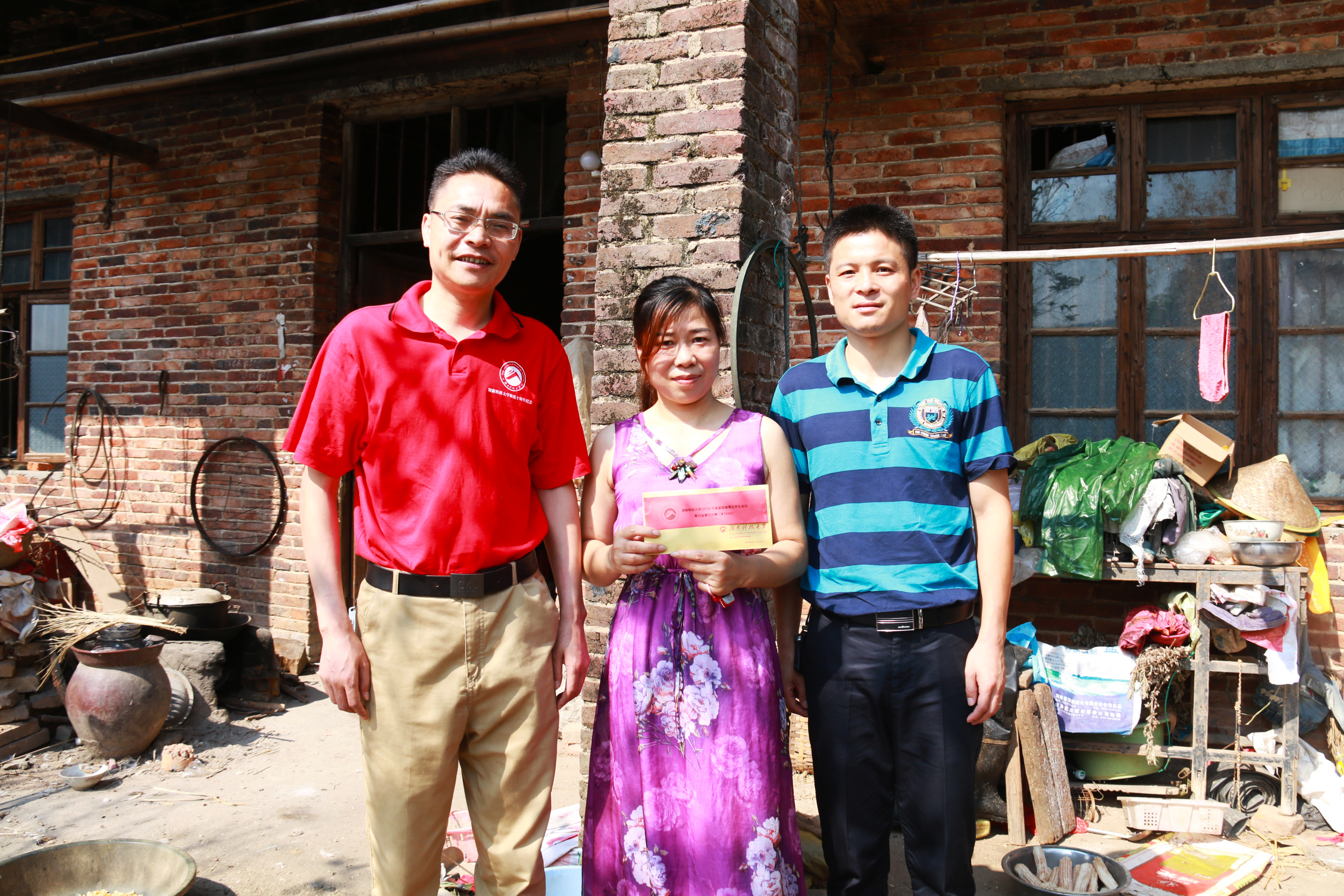 7月17日8:30,维多利亚vic115优惠大厅党委副书记傅早霞,学工办主任兼团委书记陈攀,团委第一副书记石阿霞等一行人驱车前往湖南省永州市祁阳县走访维多利亚vic115优惠大厅经济困难学子黄欢的家庭,并送去慰问基金。黄欢现就读于维多利亚vic115优惠大厅17级会计专业2班,品学兼优。