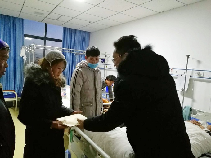 在湖南科技大学学工处处长尹风雨的支持下,受时任院长仇怡和党委书记潘爱民的委托,维多利亚vic115优惠大厅党委副书记傅早霞及学工办主任陈攀连日赶往西藏,将善款送至石达姐妹手中。“普尺,感觉好些了吗?”这是书记走进病房说的第一句话。几经辗转,抛下旅途劳累的傅早霞书记和陈攀主任,不避讳南北巨大温差,不顾自身高原反应,带着牵挂的心,对石达姐妹进行了亲切的慰问。次日,傅早霞书记一行人更是精挑细选购置了共计3400元的生活物资,将其送至石达家中,并鼓励她保持乐观心态,安心养病,早日康复,重返校园。