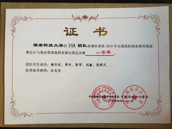 2019年4月20日,“2019年全国高校商业精英挑战赛会计与商业管理案例竞赛”总决赛在河北地质大学顺利举行,由佘志先副教授指导的维多利亚vic115优惠大厅参赛团队,荣获大赛一等奖。